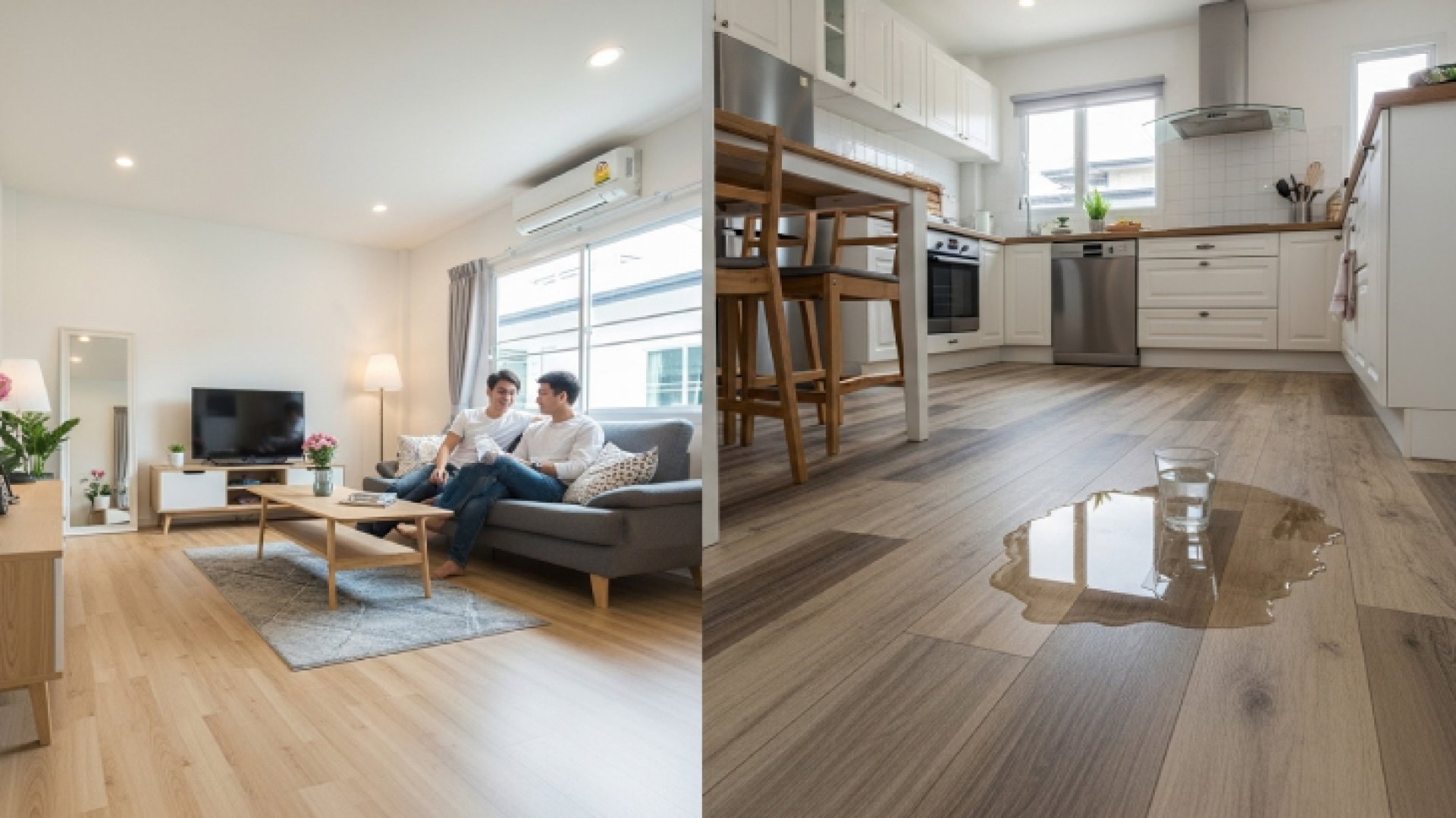 เปรียบเทียบคุณสมบัติ พื้นลามิเนต vs กระเบื้องยาง