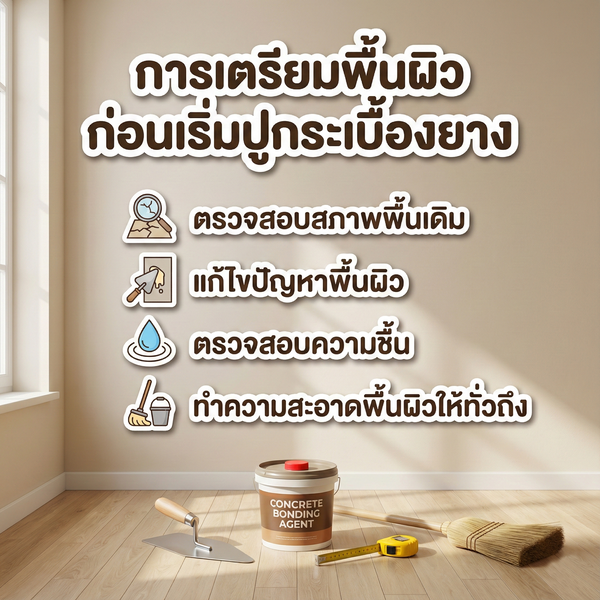 - การเตรียมพื้นผิวก่อนเริ่มปูกระเบื้องยาง