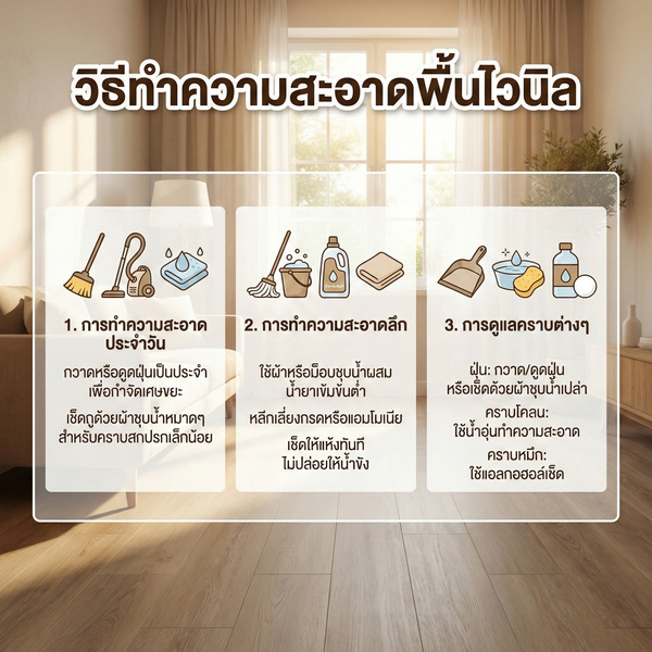 - วิธีการดูแลรักษาและทำความสะอาดพื้นไวนิล