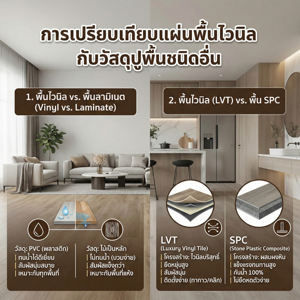 - การเปรียบเทียบแผ่นพื้นไวนิลกับวัสดุปูพื้นชนิดอื่น