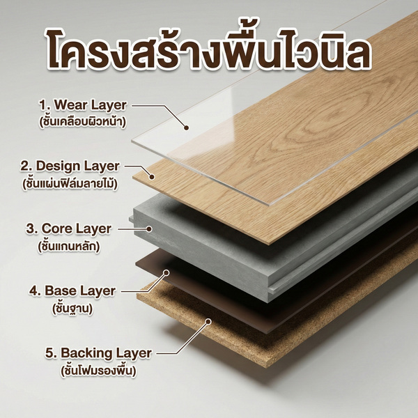 ส่วนประกอบและชั้นโครงสร้างของแผ่นพื้นไวนิล