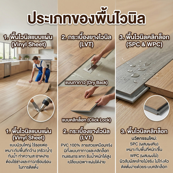 - ประเภทของพื้นไวนิลที่พบได้ในท้องตลาด