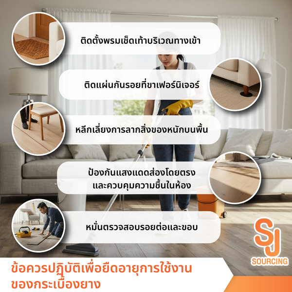 - ข้อควรปฏิบัติเพื่อยืดอายุการใช้งานของกระเบื้องยาง