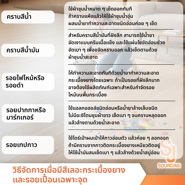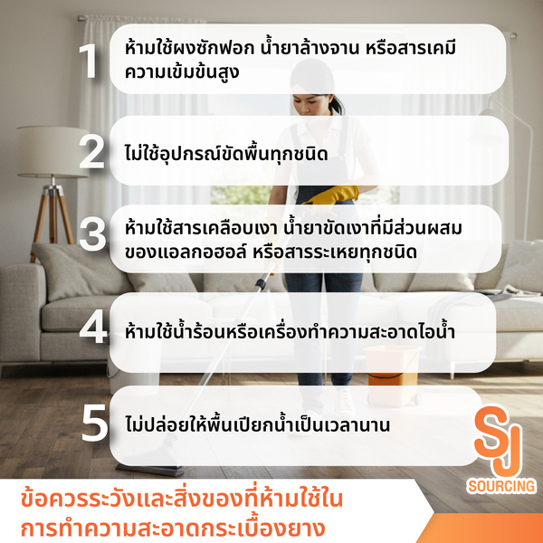 - ข้อควรระวังและสิ่งของที่ห้ามใช้ในการทำความสะอาดกระเบื้องยาง
