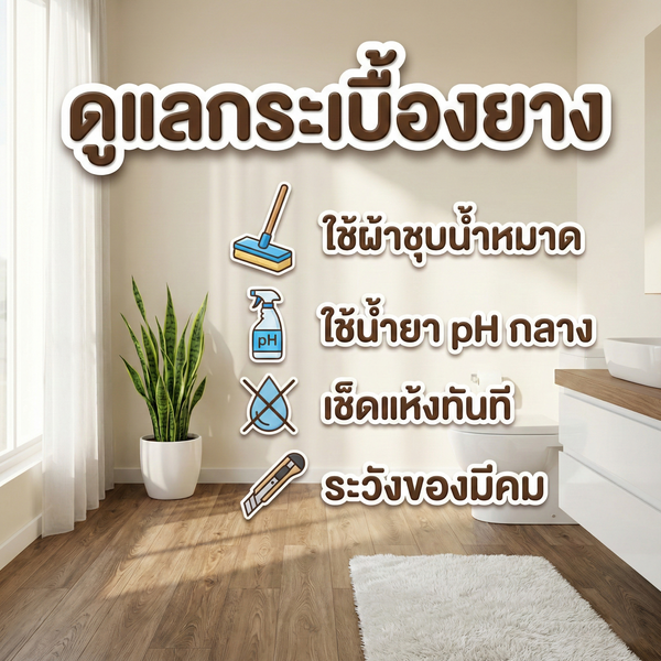 - การดูแลรักษาและข้อควรระวัง สำหรับกระเบื้องยางห้องน้ำ