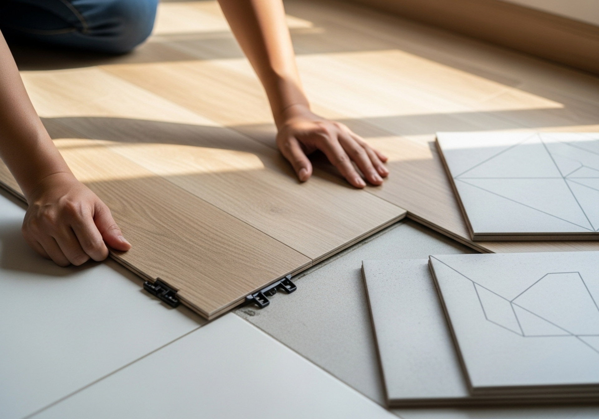 | พื้นกระเบื้อง | แบบคลิกล็อคและแบบปูกาว | ตรวจสอบร่องยาแนวและซ่อมแซมก่อนปู |