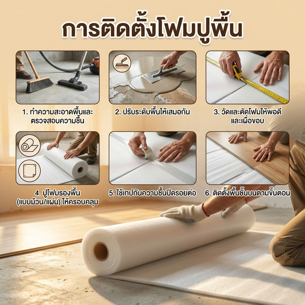 - โฟมรองพื้นช่วยปรับระดับพื้น ลดเสียงรบกวน ป้องกันความชื้น และยืดอายุการใช้งานของพื้น