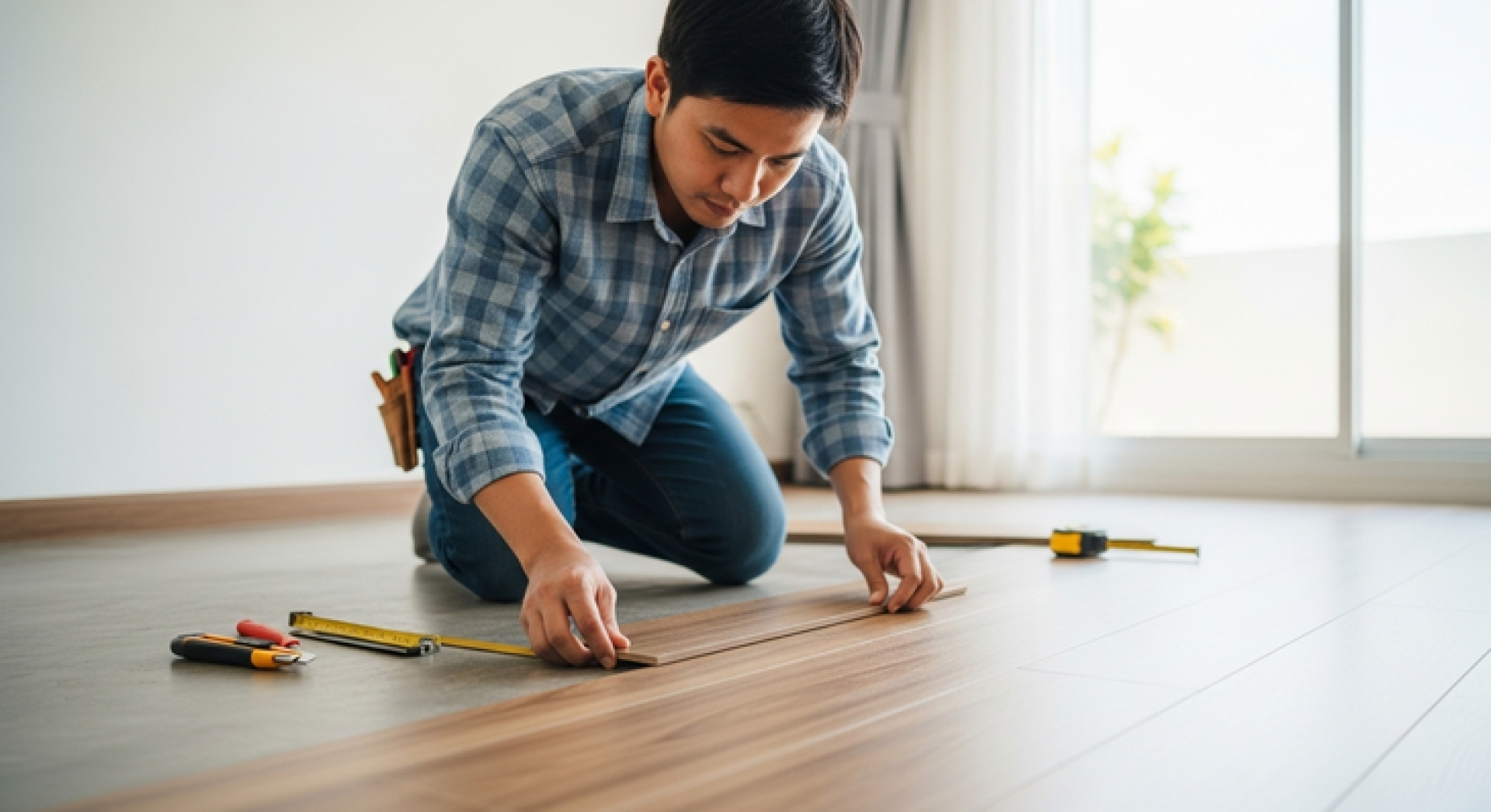 วิธีปูกระเบื้องยางแบบมีกาวในตัว ฉบับ DIY ครบทุกขั้นตอน