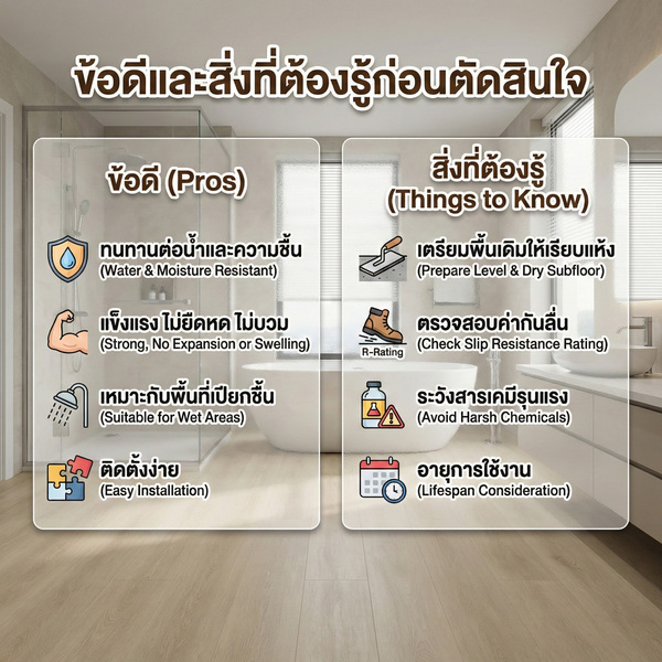 ข้อจำกัดที่ควรพิจารณาของ กระเบื้องยางปูพื้นห้องน้ำ