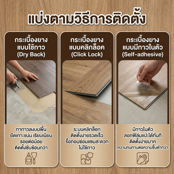 แบ่งกระเบื้องยางแต่ละประเภทจากวิธีการติดตั้ง