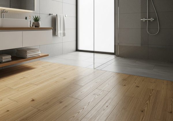 เลือกวัสดุให้เข้ากับงาน แนะนำเลือกใช้กระเบื้องยางปูห้องน้ำ ชนิด SPC ที่มีคุณสมบัติทนความชื้น และใช้กาวสำหรับติดตั้งในพื้นที่เปียกชื้นโดยเฉพาะ