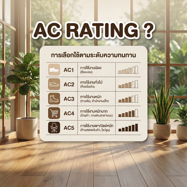 - ค่า AC (Abrasion Class) มาตรฐานสำคัญที่บอกระดับความทนทานต่อรอยขีดข่วน มีตั้งแต่ AC1 ถึง AC5 ค่าที่สูงขึ้นหมายถึงความทนทานที่มากขึ้น